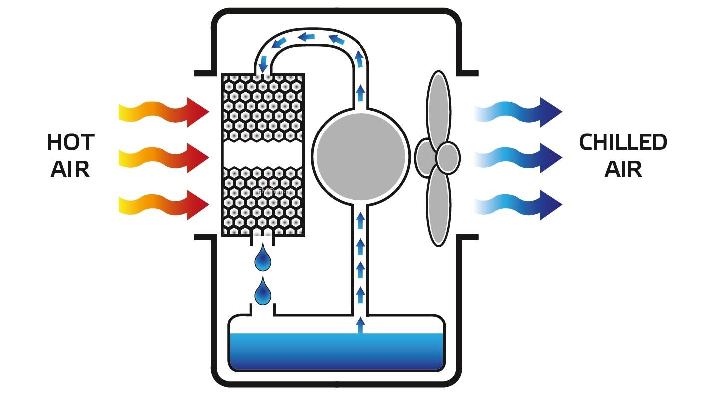 Ochlazovač BC 80 s výkonem ochlazení vzduchu až 8000 m3/hod je energeticky velmi