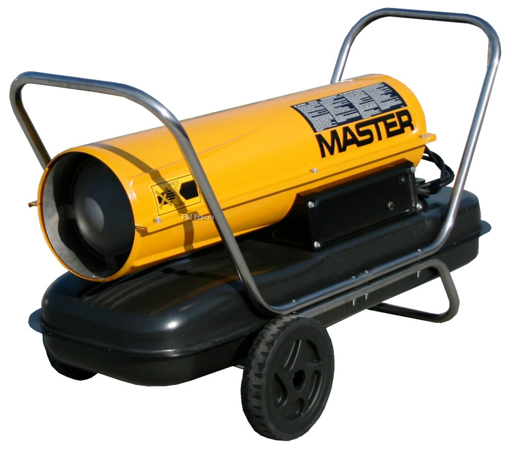 Mobilní nízkotlaké naftové topidlo MASTER B 100CED s přímým spalováním a bez odvodu zplodin o výkonu 27 kW.