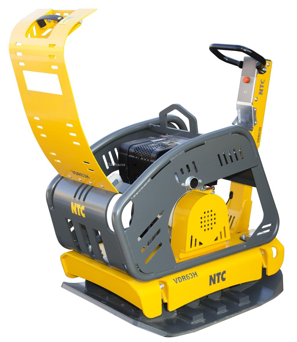 Reverzní vibrační deska NTC VDR63HE poháněná motorem HATZ 1B50, hmotnost 440 Kg, rozměr hutnící desky 700 x 895 mm. Výkonný hutnící stroj vhodný především pro hutnění zemin. Alternativně lze použít i pro hutnění živičných povrchů nebo zámkové dlažby (především reverzní desky do 250kg).